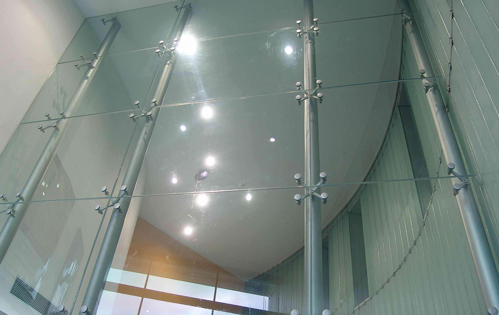 点式玻璃幕墙它是由玻璃面板、点支撑装置和支撑结构构成的玻璃幕墙称为点支式玻璃幕墙。点式玻璃幕墙的开发与应用,一开始就显示出了较强的生命力,它为建筑大师们提供了一个新的设计空间,无疑将会促进建筑幕墙的发展与延伸。究其原因主要是它具有钢结构的稳固性、玻璃的轻盈性以及机械的精密性。轻纺城中心主立面点式玻璃幕墙的采用,从实际使用效果看,总体上得到肯定。